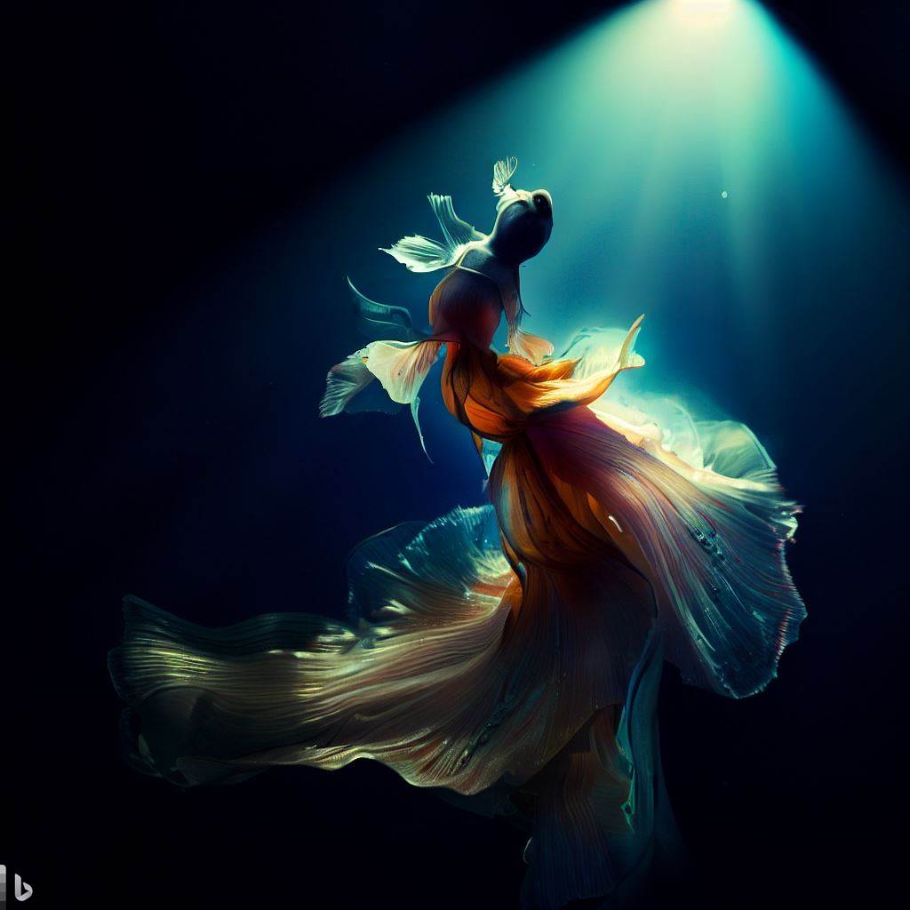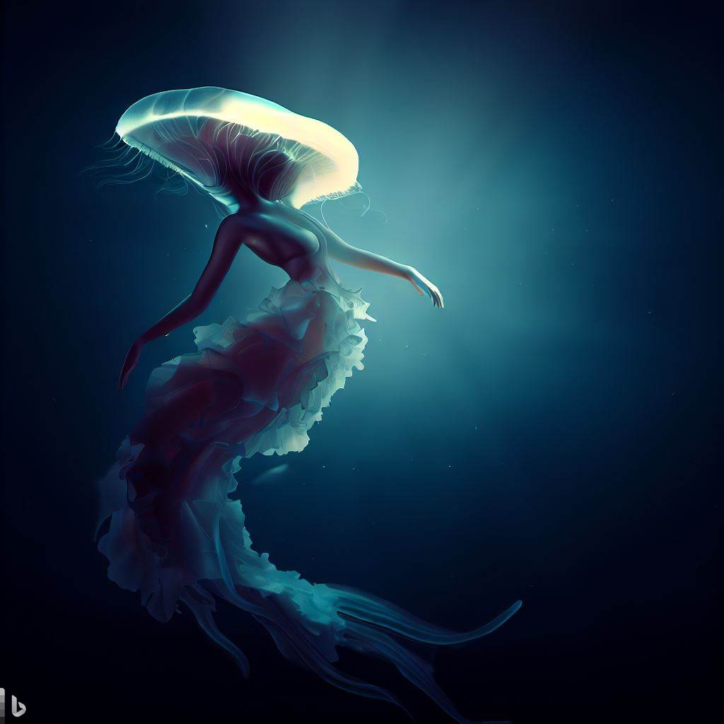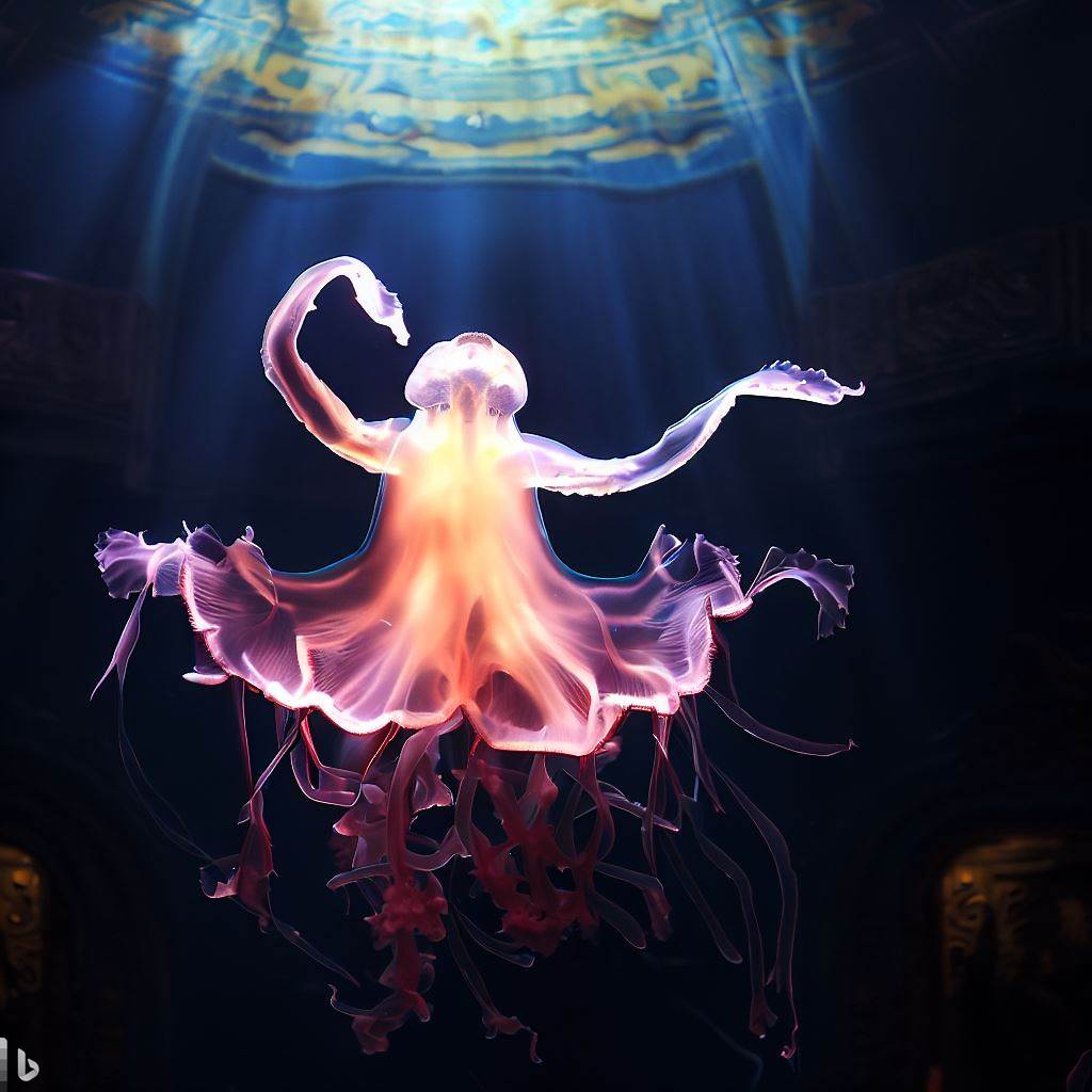 Pour cette série, j’ai fait imaginer au générateur d’images DALL.E des hybrides entre des méduses et des danseuses classiques.