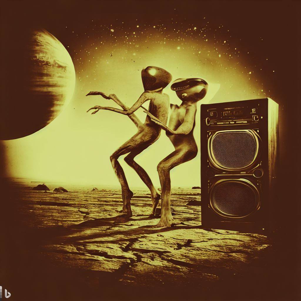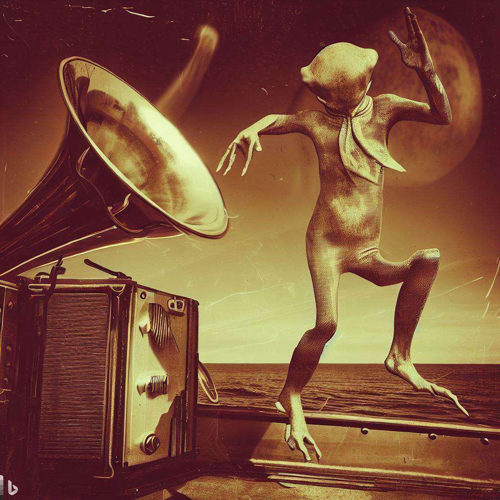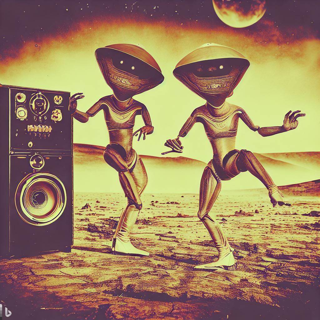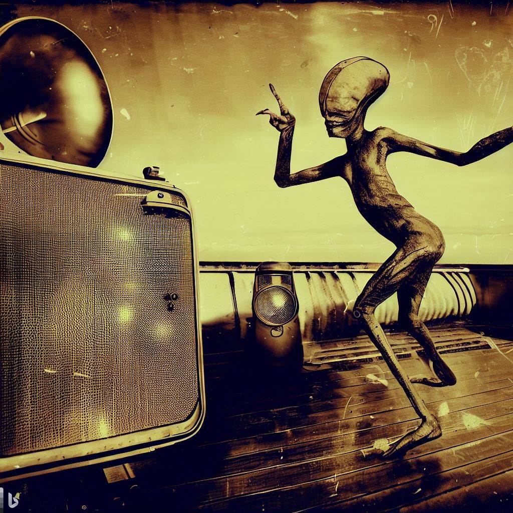 Pour cette série, j’ai fait imaginer au générateur d’images DALL.E : de vieilles photos d’extraterrestres dansant.