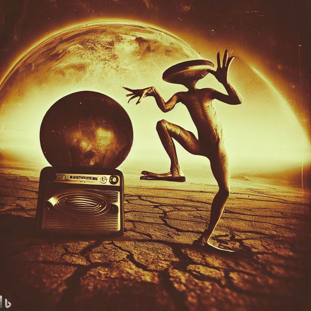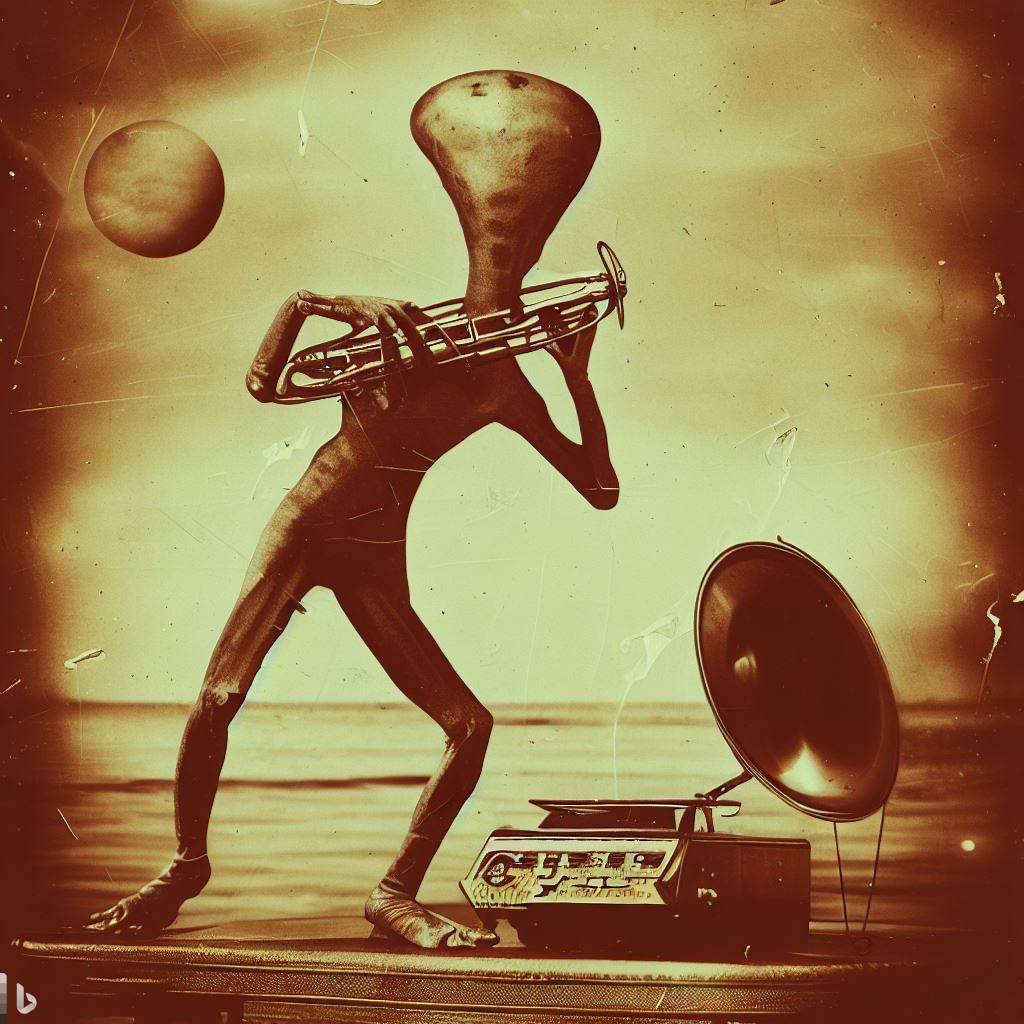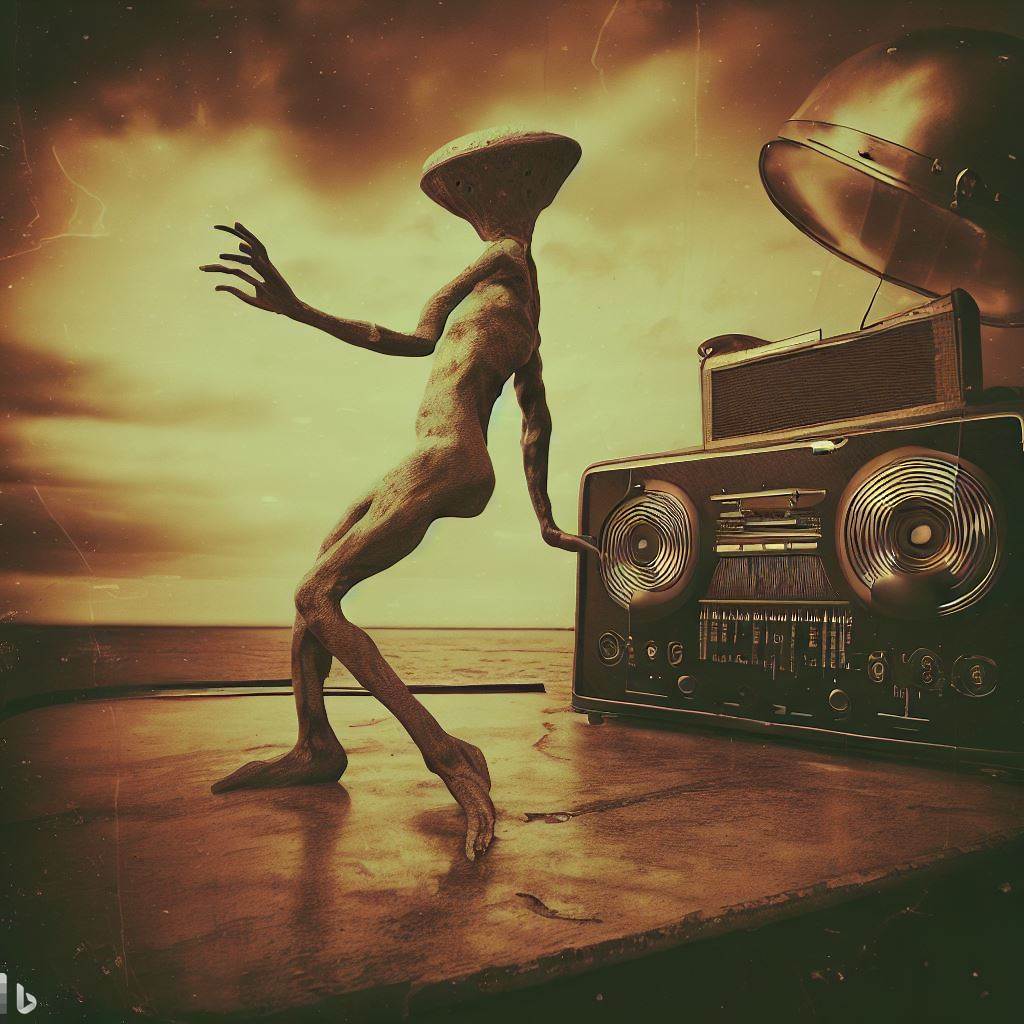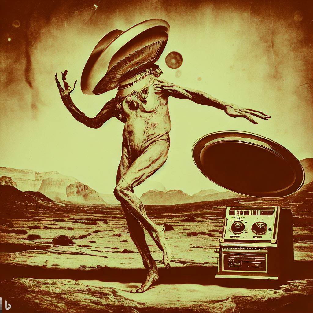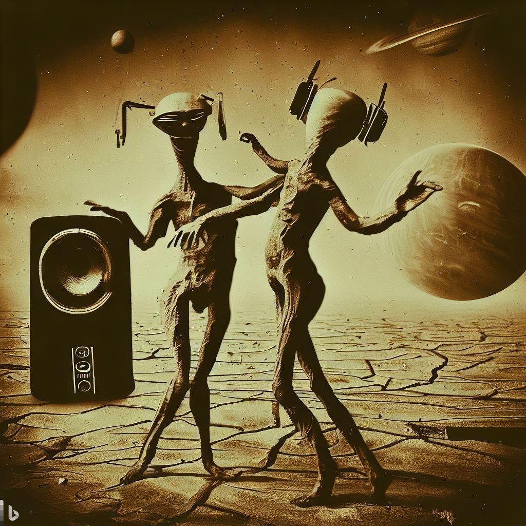 Pour cette série, j’ai fait imaginer au générateur d’images DALL.E : de vieilles photos d’extraterrestres dansant.