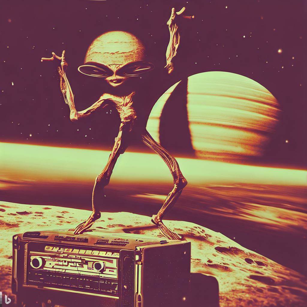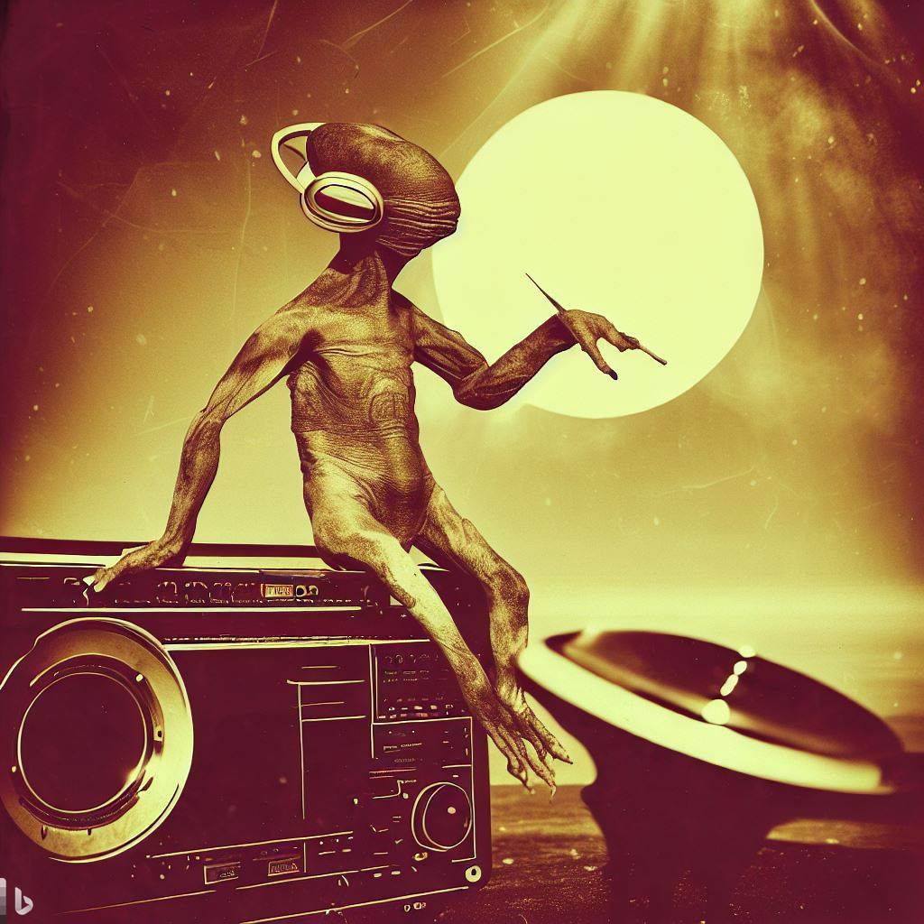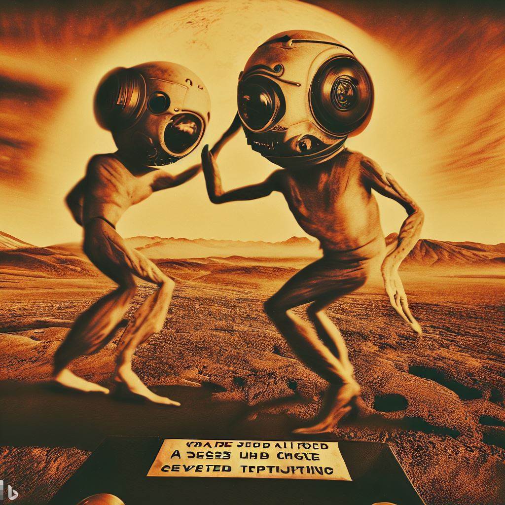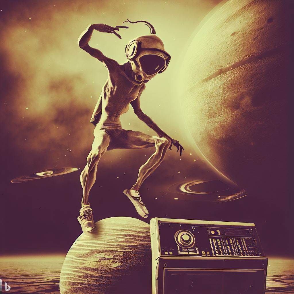 Pour cette série, j’ai fait imaginer au générateur d’images DALL.E : de vieilles photos d’extraterrestres dansant.